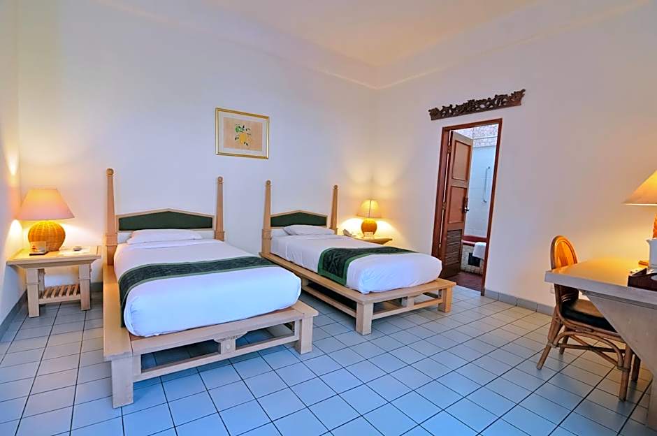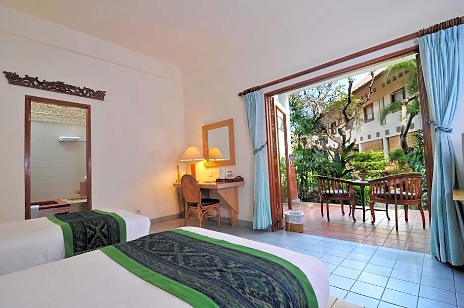 Two outdoor pools invite sunny days, including a dedicated kids-only pool for younger travelers. Beach chairs and loungers line the pool area, while garden ambience and garden views contribute to a tropical Sanur experience.